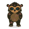 These bears have medium ears, large blue eyes, a large nose, a tan face/belly, dark brown spots, and a brown body. “The top row of belly spots all face (our) left. All but the last spot in the second row face (our) right. The head spots form a ring. The only place where there isn't a spot is on (our) right leg.” -creator