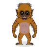 These chimps are a radiant orange color with black stripes, a pink belly, tiny black eyes, large ears, and long fur.